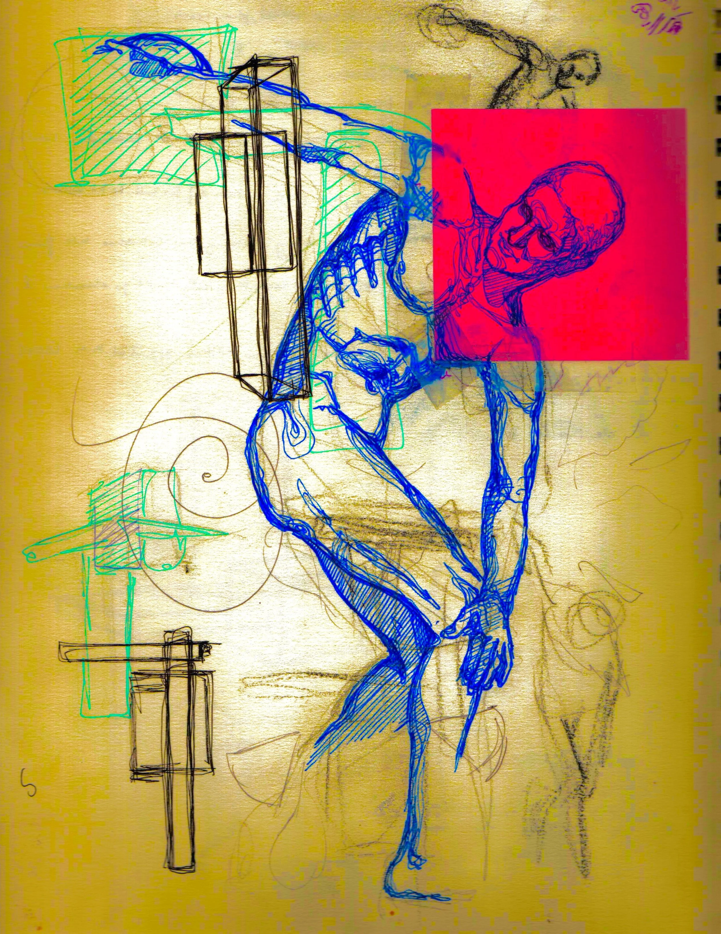 2011, pencil, bic pen, green pen, blue ink, post-it & digital edit