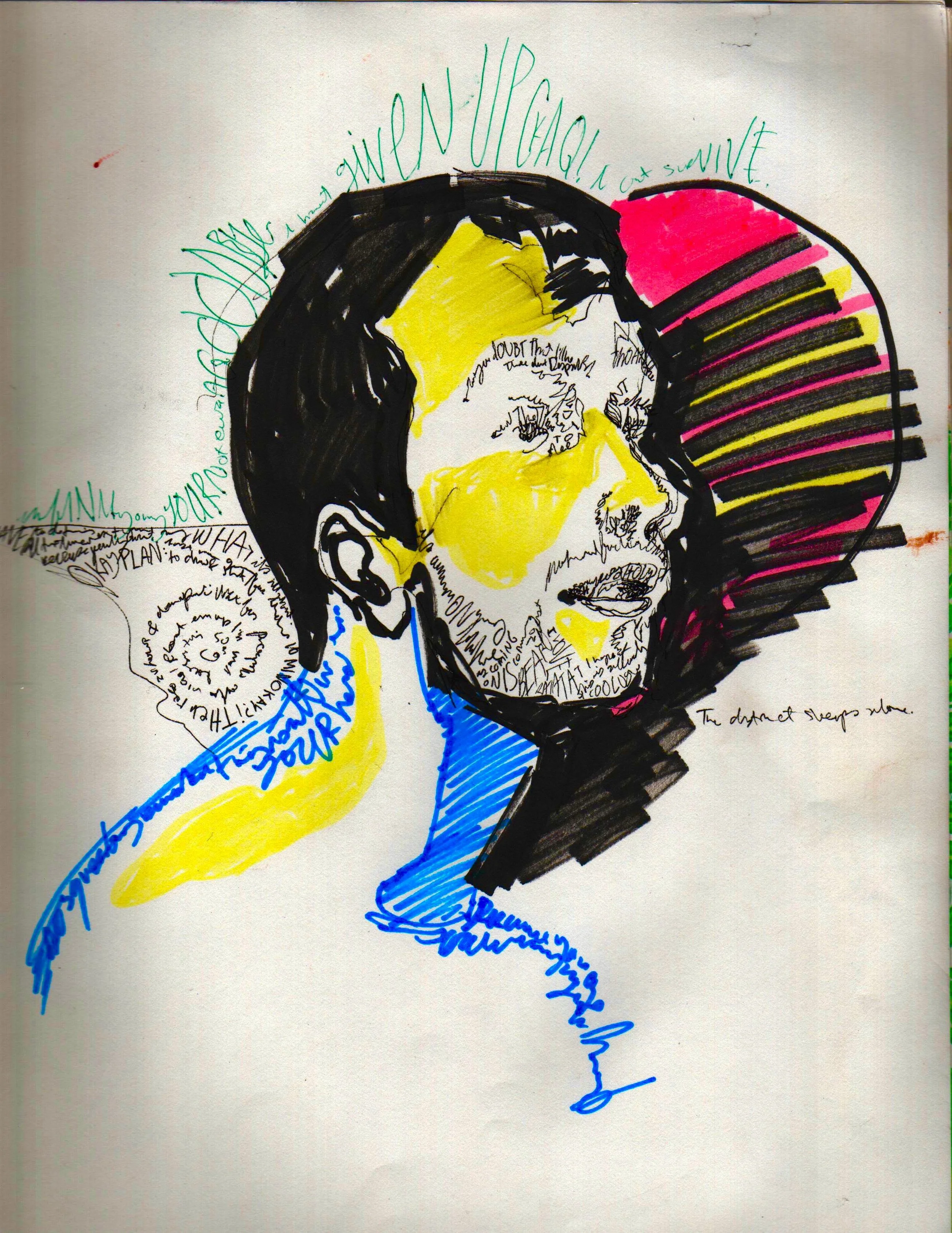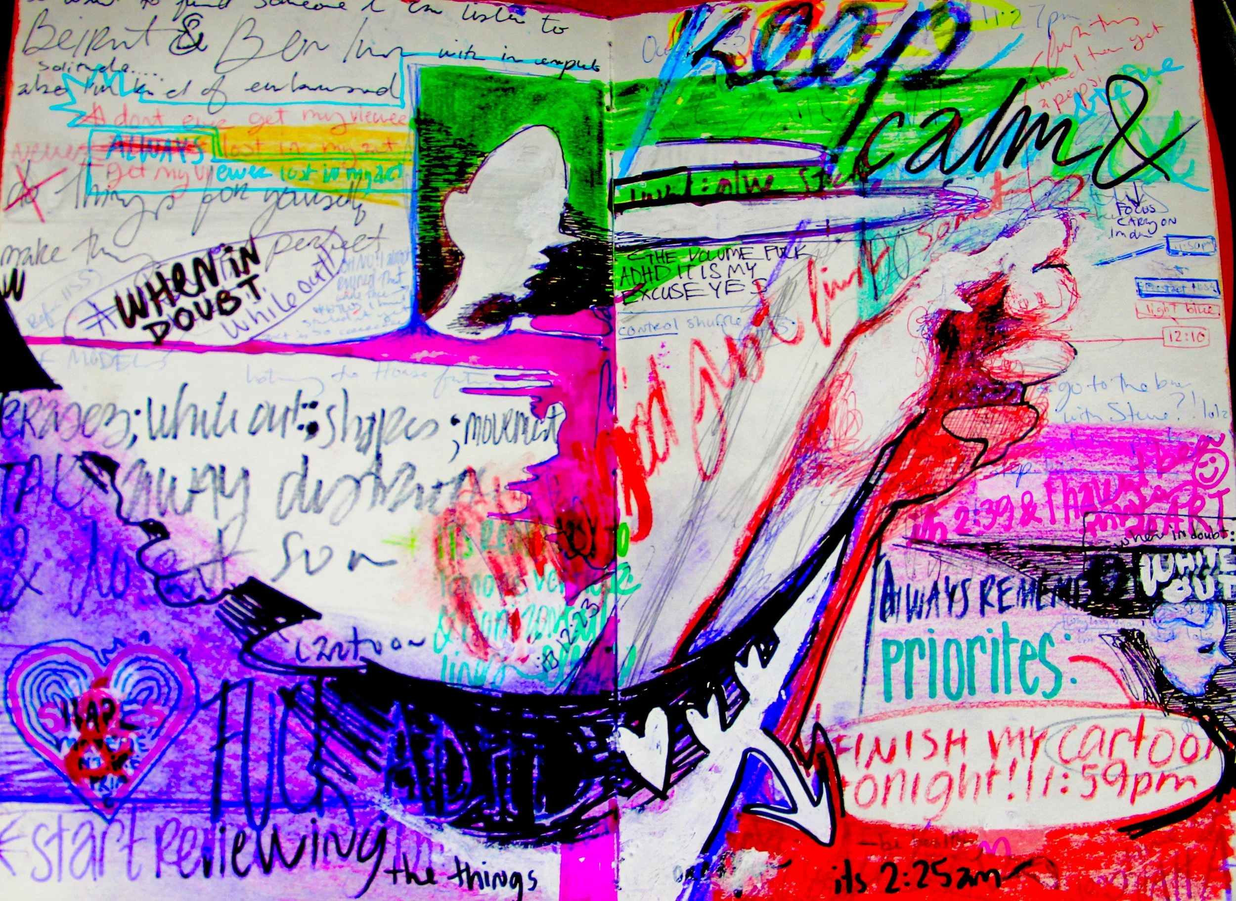 I was diagnosed Bipolar 1 when I was 19 in November 2012 on the day Barack Obama was elected our president again. The following images are a portion of the work I created starting in August 2012 coming up towards mania, during mania, hospitalization & post hospitalization concluding mid January 2013. The medical world describes the symptoms of mania as having rapid flows of ideas, heightened mood, euphoria, pressure of speech, increased energy, decreased need for sleep, hyperactivity & delusions of grandeur.